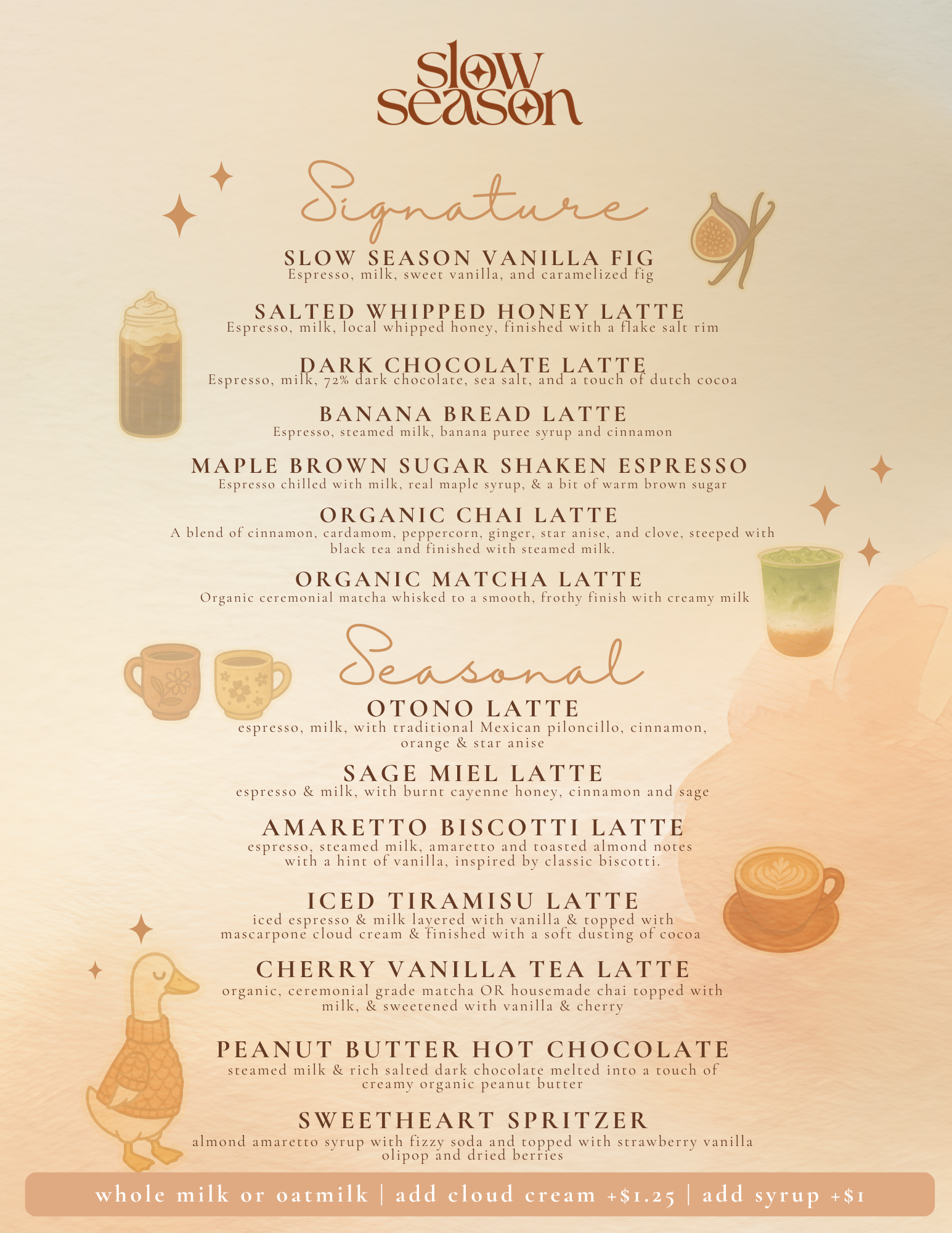 Want to gift a little Slow Season? We offer gift certificates, too - pick up a physical gift card in the Coffee House or get one online, here.