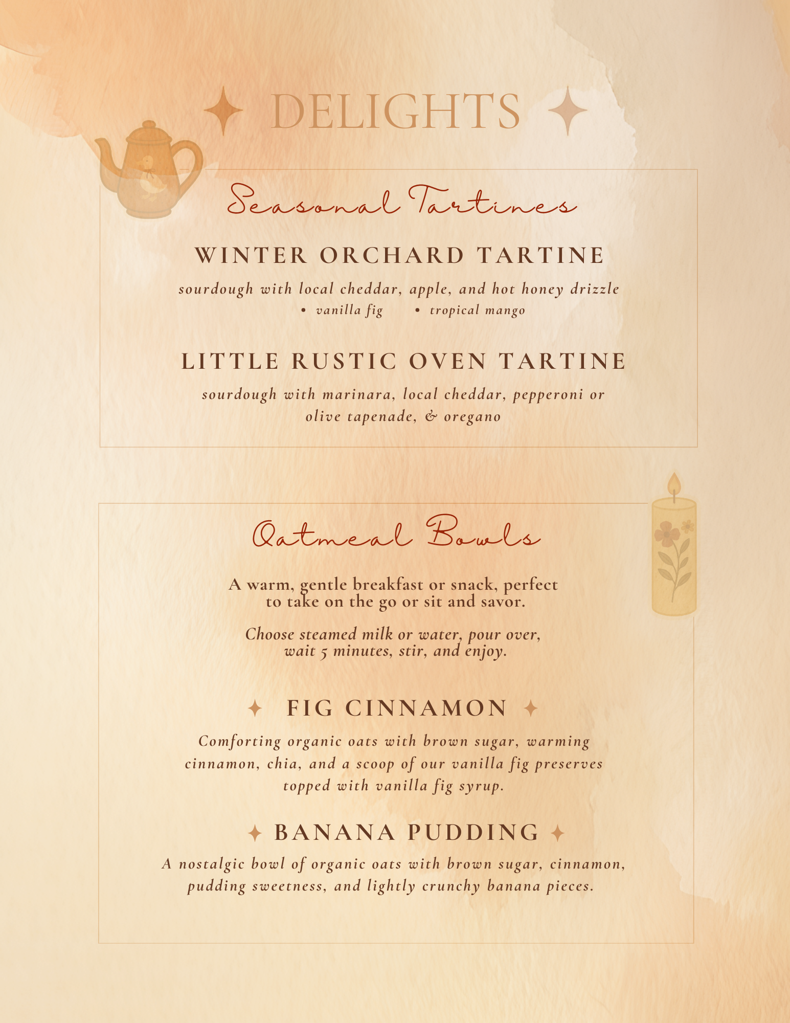 Our menu is simple, seasonal, and made with care. We craft every syrup in-house, and they change with the rhythm of the year. We even have a rotating Zodiac Latte, inspired by the current sign and made just a little bit magical!
