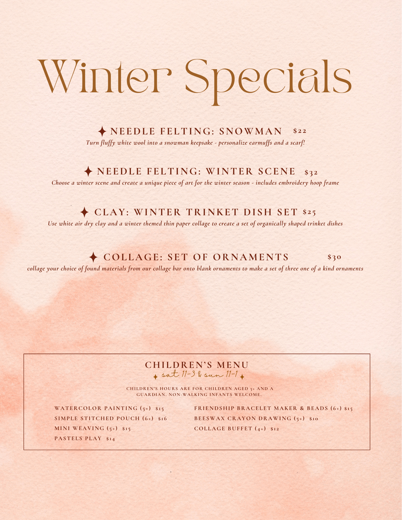 Settle In & Create – Once you’ve made your selection, we’ll bring your project directly to your table—just like at a café. Craft at your own pace, in good company or in peaceful solitude.